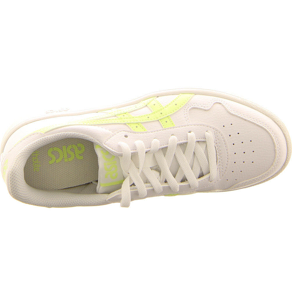 wie den ASICS-Streifen an den Vierteleinsätzen und dem ASICS-Aufdruck an der Ferse. Die Vintage-Basketball-Ästhetik des JAPAN S wird durch legendäre,
