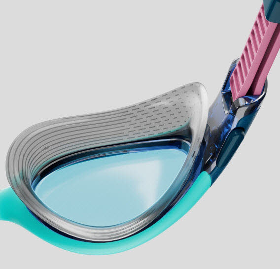 bringt die neue Biofuse 2.0 Schwimmbrille für Damen Komfort und Passform mit unserem zum Patent angemeldeten Druckknopf-Mechanismus