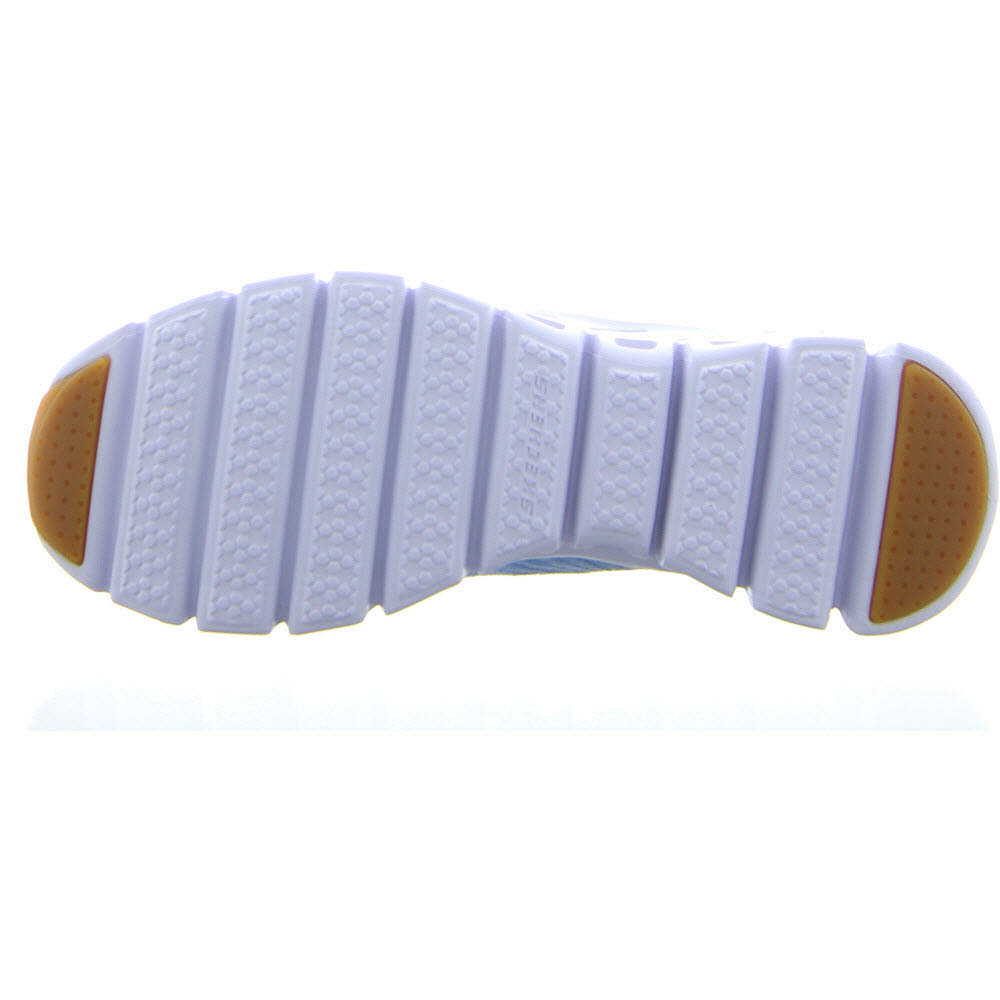 eine Skechers Air-Cooled Memory Foam Komfort-Innensohle und eine gepolsterte, geometrische Glide-Step™ Zwischensohle.