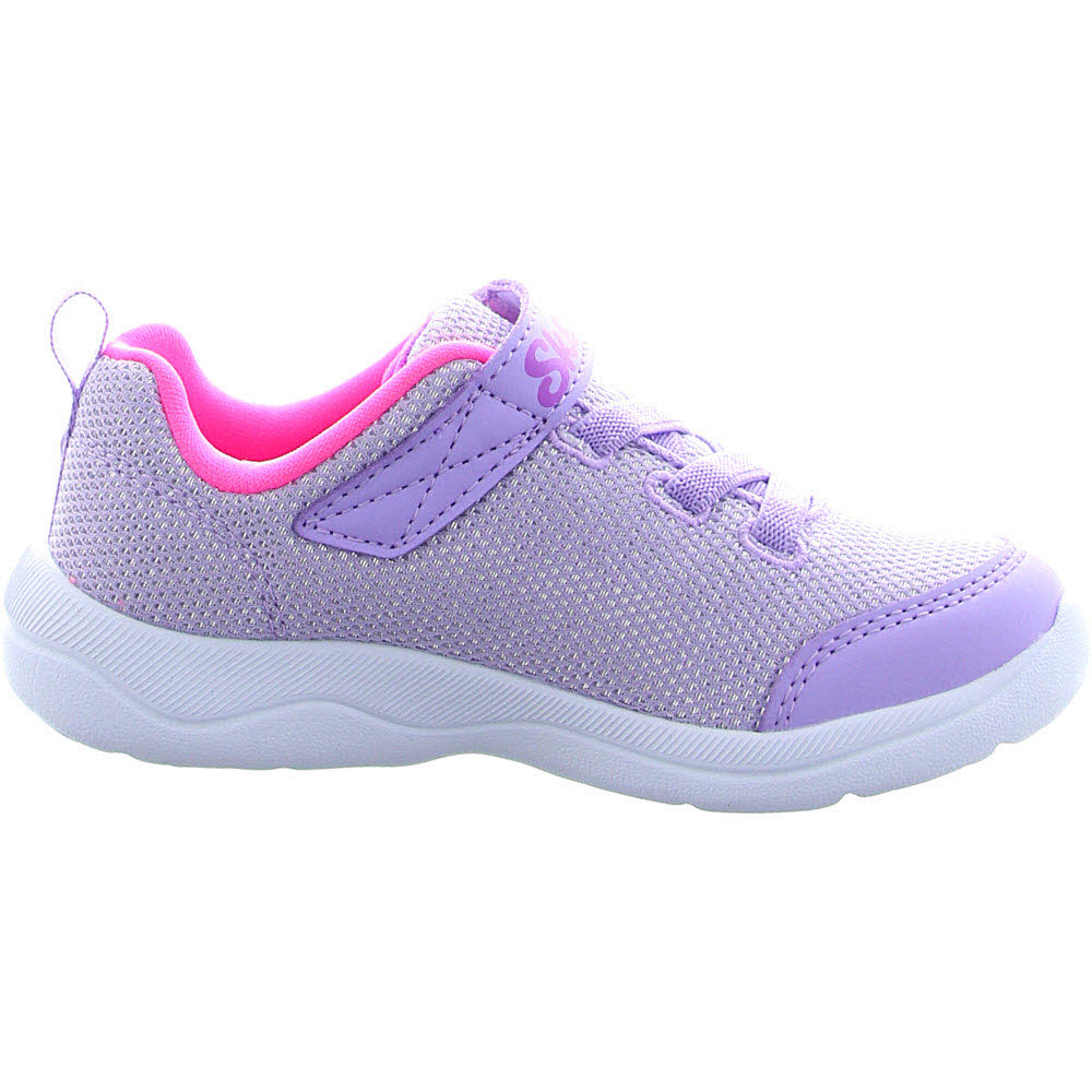 Dieser Sneaker hat ein weiches Mesh-Obermaterial mit einer Stretch-Schnürung vorne und einem Klettverschluss.