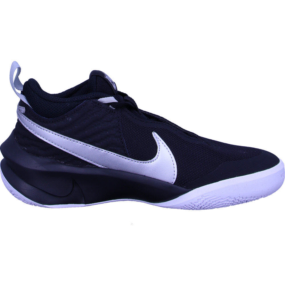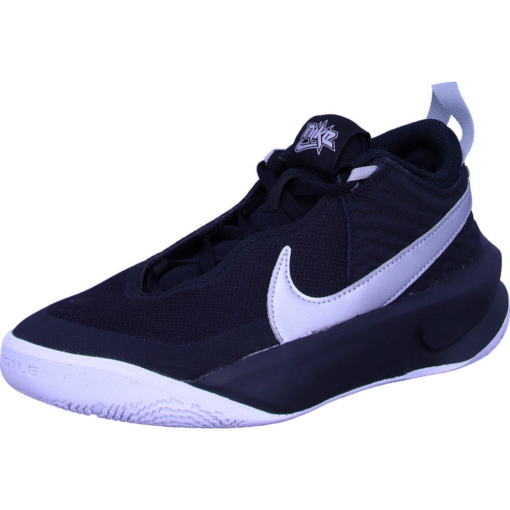 Der Nike Team Hustle D 10 Basketballschuh präsentiert sich für Kinder als vielseitiger Partner für energische Korbleger und präzise Würfe.