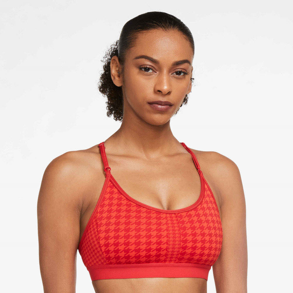 Der Nike Dri-FIT Indy Icon Clash Sport-BH besticht durch einen Houndstooth-Print