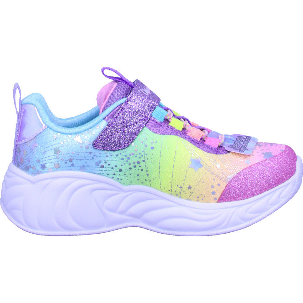 Verzaubere deinen Tag mit ein klein wenig Einhorn-Magie im Skechers S-Lights: Unicorn Dreams Schuh. Sneaker mit Leuchteffekt und einem Obermaterial aus Synthetik im Farbverlauf mit Glitzerfinish und einer gepolsterten Komfort-Einlegesohle