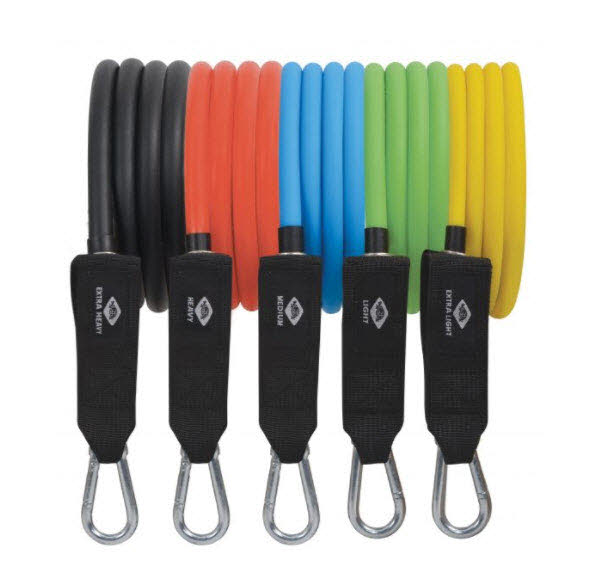 -Die Trainingsbänder haben 5 verschiedene Widerstandsstufen in 5 verschiedenen Farben. Mit den verschiedenen Widerstandsbändern lassen sich 29 unterschiedliche Widerstandslevel kombinieren