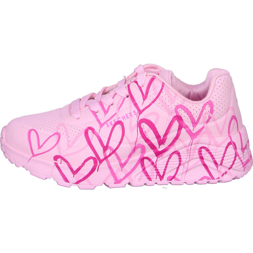 Skechers Street™ Uno Lite - Spread the Joy. Dieser modische Sneaker mit Schnürung verfügt über einen Allover-Print des charakteristischen Herz-Designs des Künstlers,