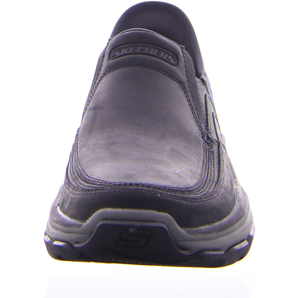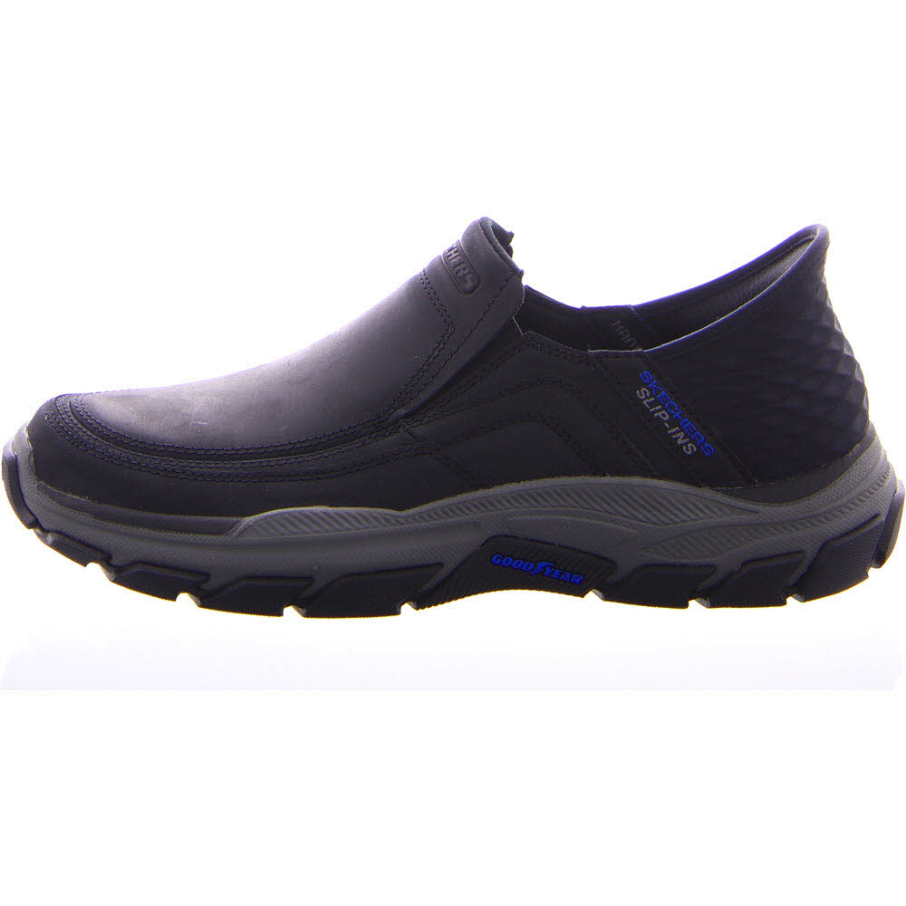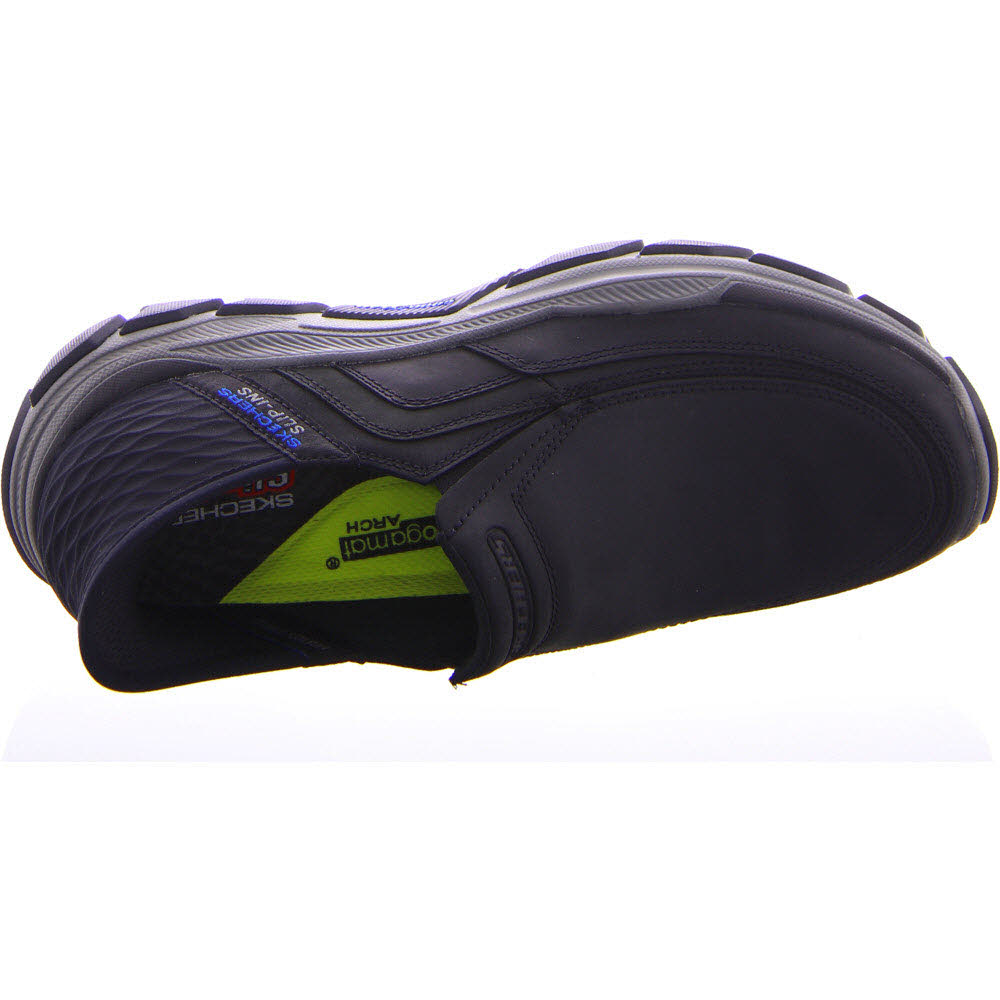 einem Obermaterial aus Leder mit TOUCHLESS FIT® Skechers Slip-ins® geformtem Fersenteil, Comfort Arch Innensohle und Goodyear® Rubber Laufsohle ausgestattet.