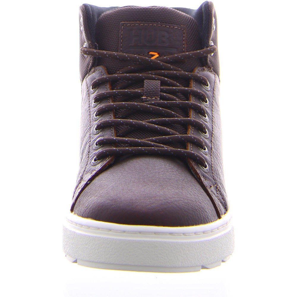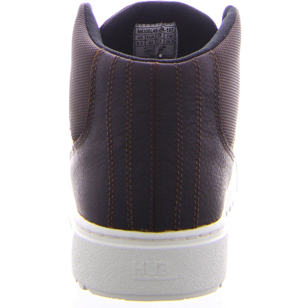 Der Murrayfield besteht aus Leder, welches von der Leather Working Group zertifiziert wurde. Original HUB-Logos befinden sich auf der Rückseite und auf der Zunge des Schuhs.