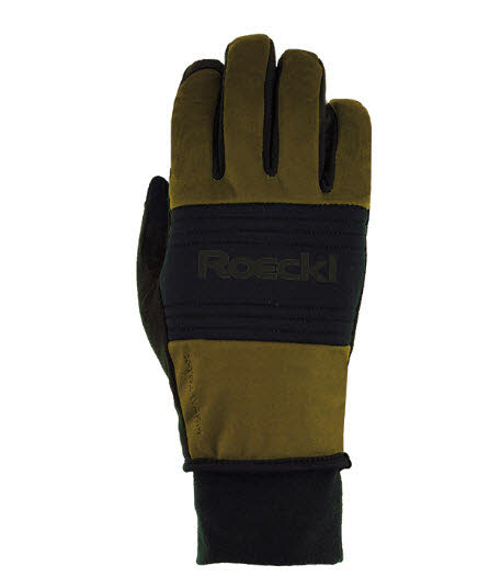 Erhältlich in cleanem Schwarz sowie Olivgrün mit Schwarz, jeweils akzentuiert mit dem prägnanten ROECKL Ton-in-Ton-Reflect-Logo quer über dem Handrücken.
