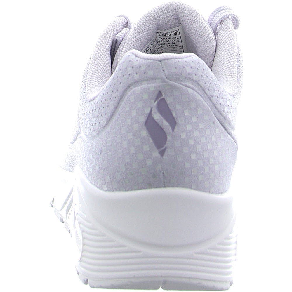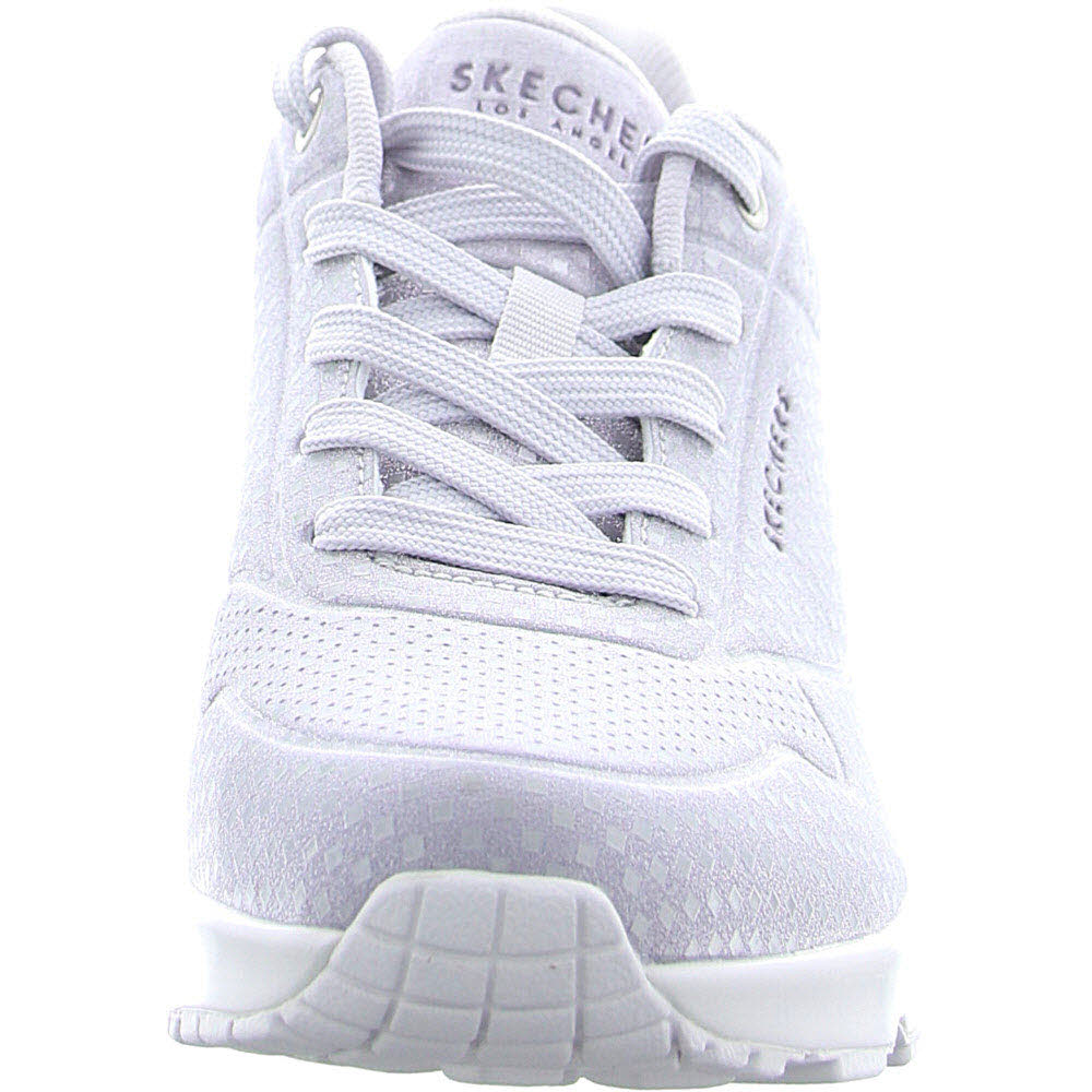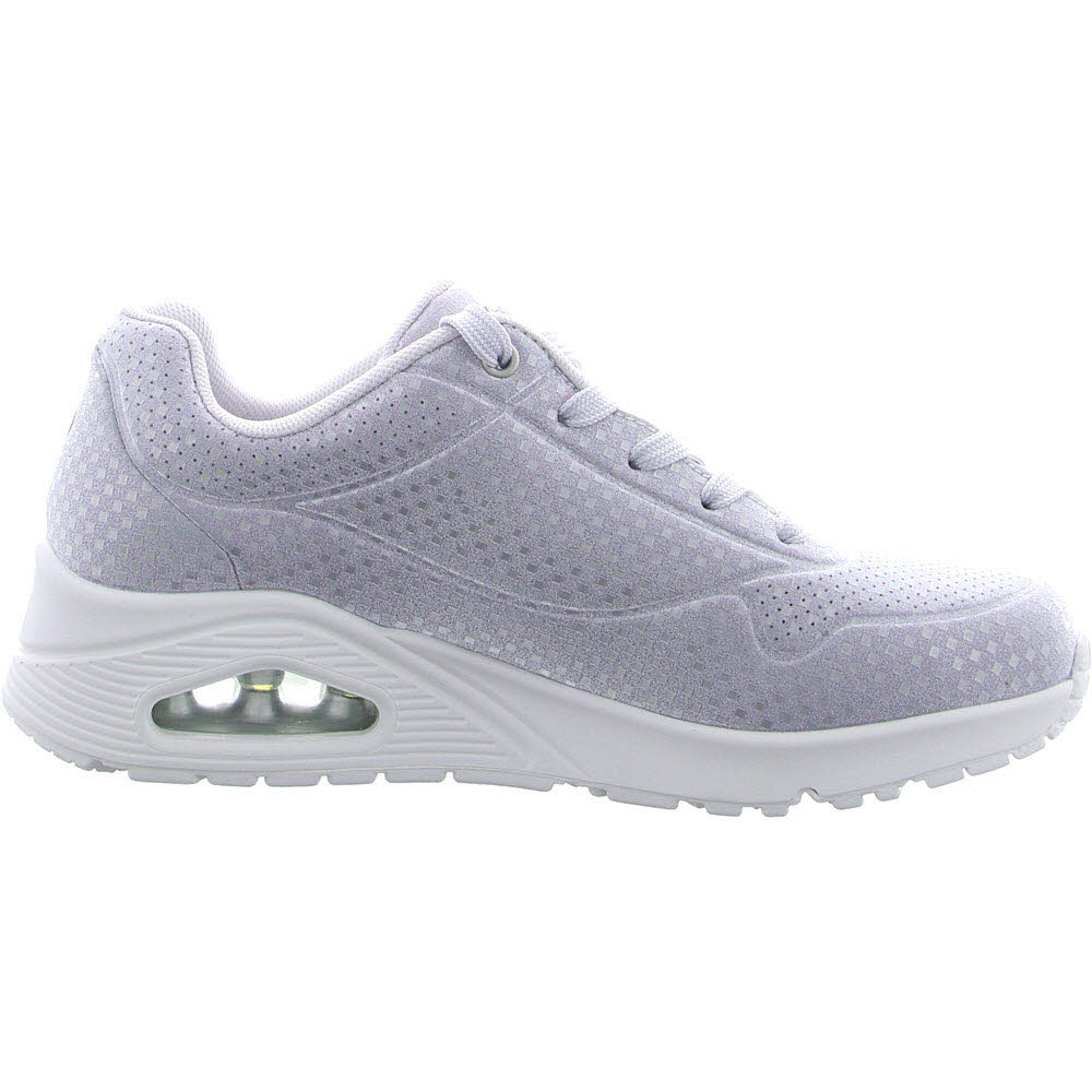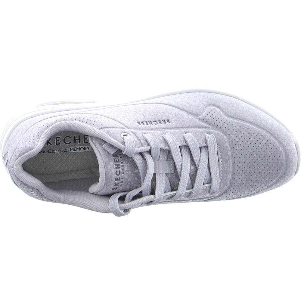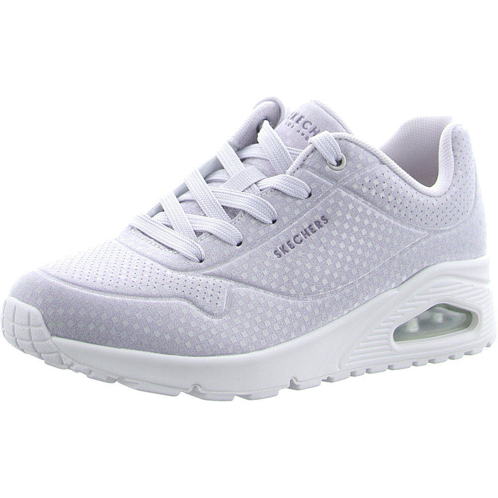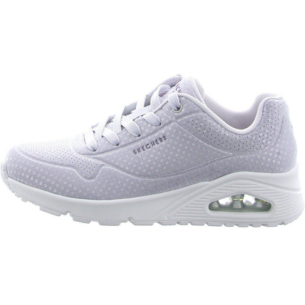 Tauchen Sie mit Skechers Street™ UNO - Disco Nite in den Groove ein. Dieser modische Sneaker verfügt über eine Schnürung aus synthetischem Disco-Glitzer-Oberteil, eine Skechers Air-Cooled Memory Foam-Innensohle® und eine sichtbare Skech-Airbag-Mittelsohle®.