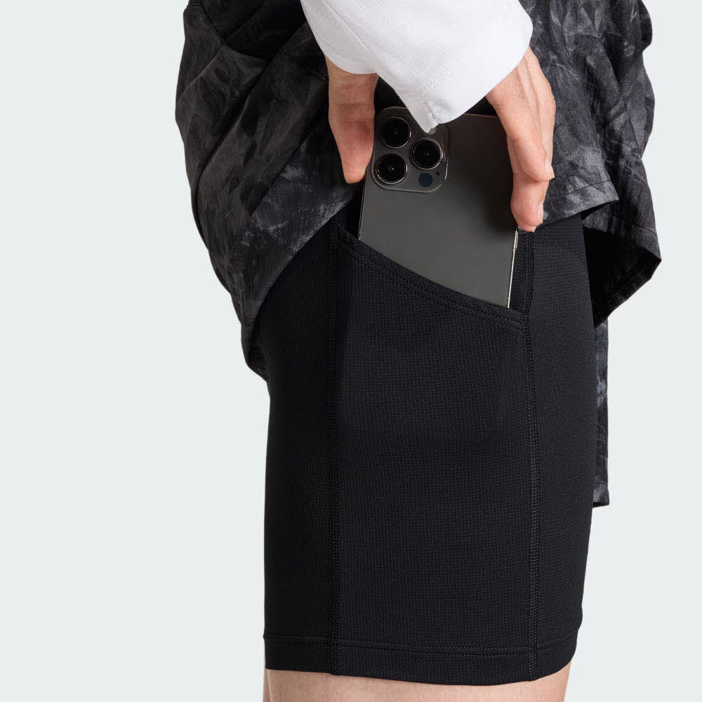 Durch die Handytasche mit Reißverschluss auf der Rückseite und Seitentaschen an den Innenshorts hast du deine wichtigsten Dinge immer griffbereit.