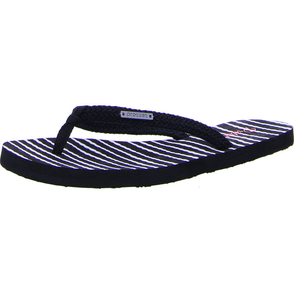 Die Salter 19 von Protest sind fantastische Flipflops für den Sommer. Sie haben ein asymmetrisches Streifenmuster an der Decksohle sowie tiefschwarze, gehäkelte Riemen, die für besonderen Komfort sorgen. In den Salter 19 Flipflops von Protest bist du für den Sommer bereit.