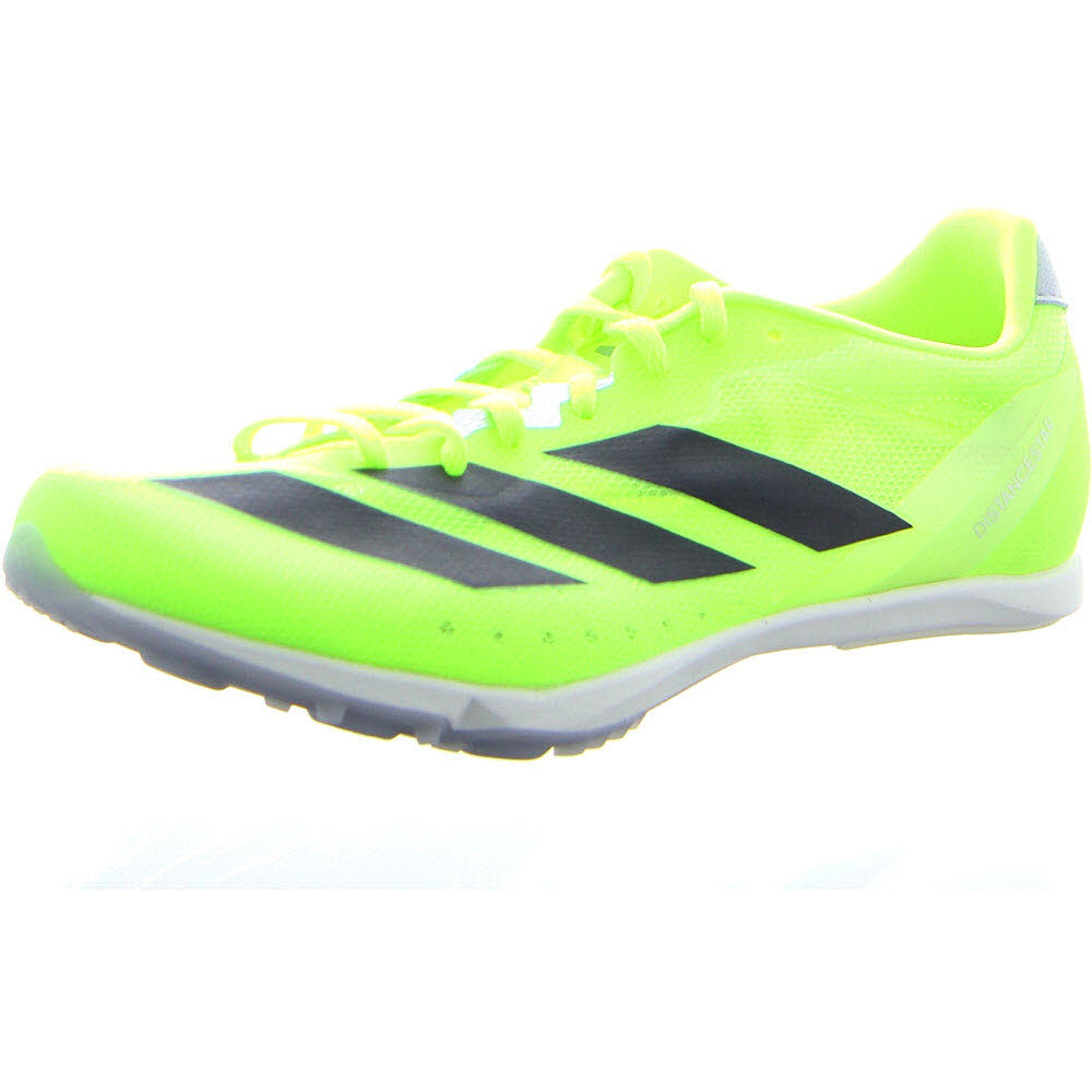 Der Adizero Distancestar verspricht Speed und Performance. Seine leichten Sprint-Spikes sind für Top-Tempo designt.