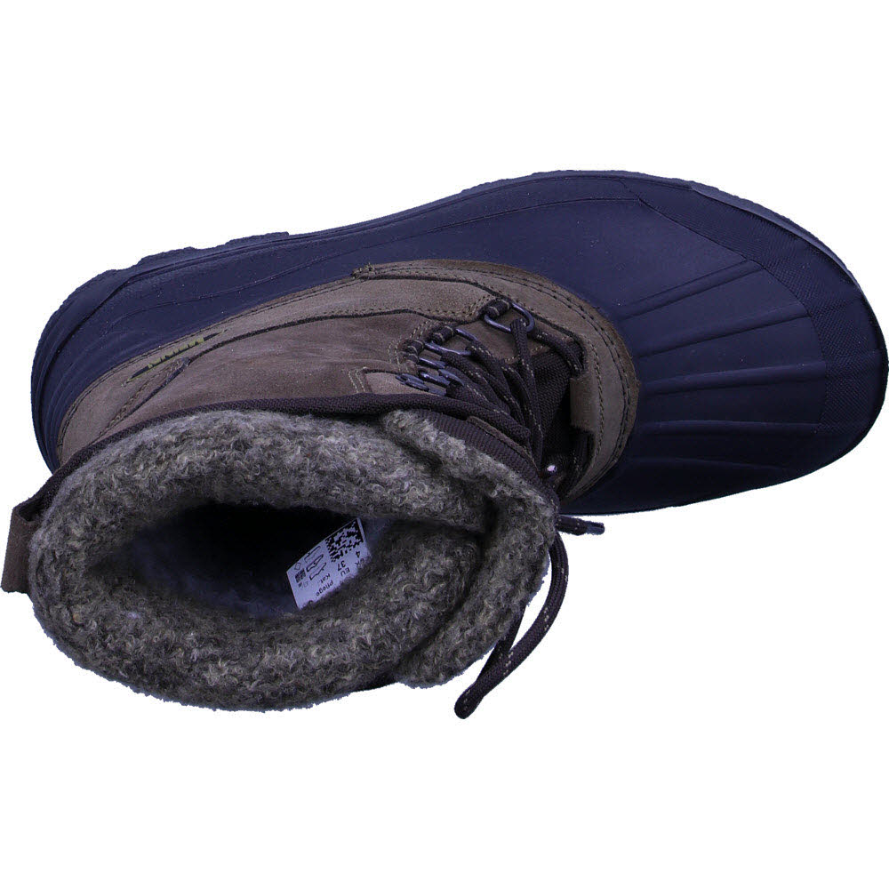 Die Schuhe haben ein Futter in Form eines abnehmbaren Filzstiefels, der zum Trocknen oder Reinigen leicht entfernt werden kann.