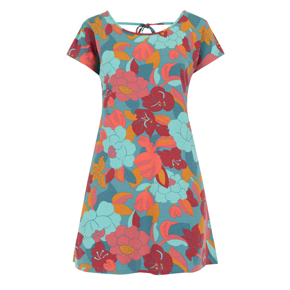 Das Padma-Kleid mit Nackenband ist von vorne ein praktisches T-Shirt-Kleid, hinten zeichnet es sich durch einen wunderschönen V-Ausschnitt und ein Halteband am Nacken aus.