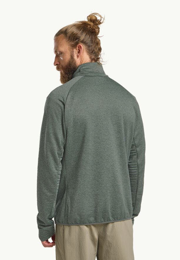 Der TAIGA FULL ZIP bietet ganztägigen Tragekomfort bei warmem oder wechselhaftem Wetter und besteht aus einem Abstandsgewebe, das für optimale Luftzirkulation und somit für atmungsaktiven Tragekomfort sorgt.