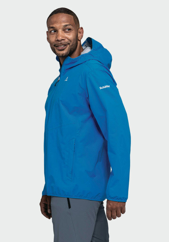 Zwei praktische Reißverschlusstaschen und eine Kapuze mit elastischem Einfass machen diese Jacke zum idealen Begleiter bei wechselndem Wetter.