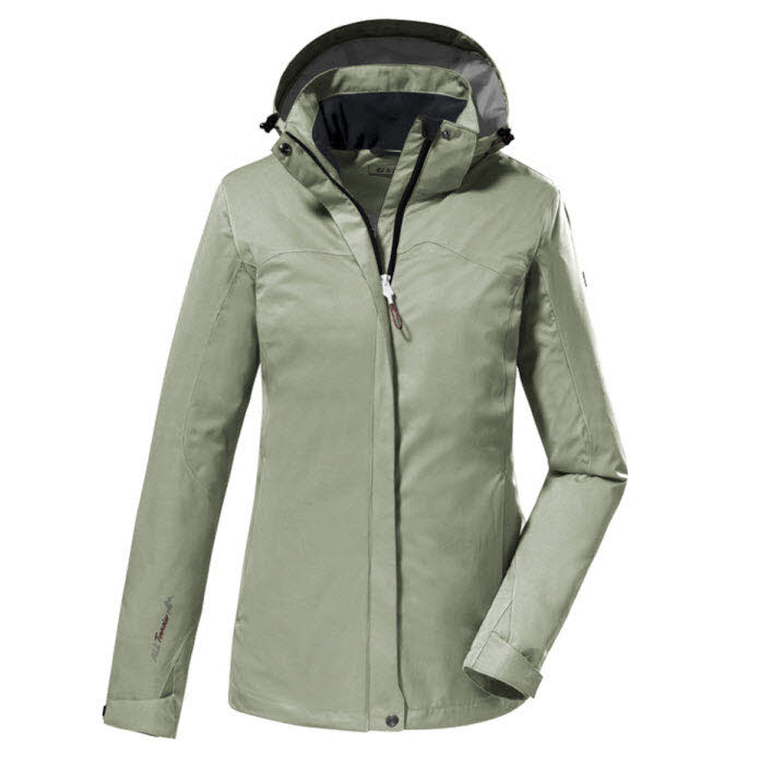Die Damen Funktionsjacke von killtec schützt zuverlässig vor Wind und Regen.