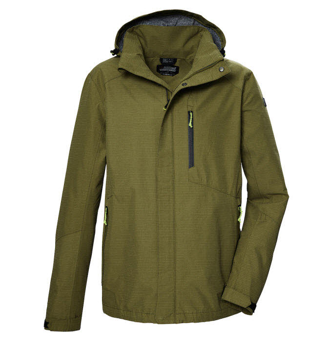 Die killtec Outdoorjacke für Herren schützt mit ihrem wind- und wasserdichten Obermaterial und ihren verschweißten Nähten zuverlässig vor Nässe und Wind. Dabei ist die ungefütterte Übergangsjacke natürlich auch atmungsaktiv.