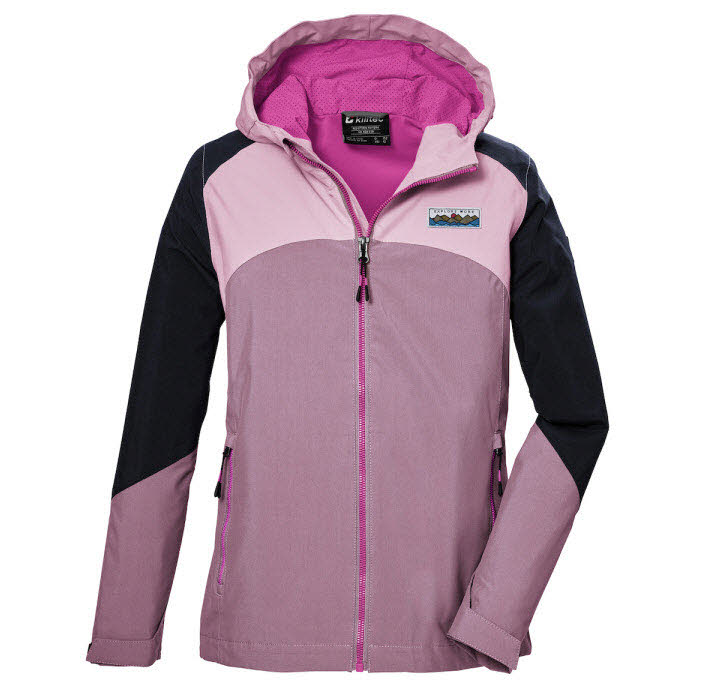 Die killtec Kinder Funktionsjacke mit längenregulierbarer Kapuze und in Colourblock Optik macht jedes Outdoor-Abenteuer mit.