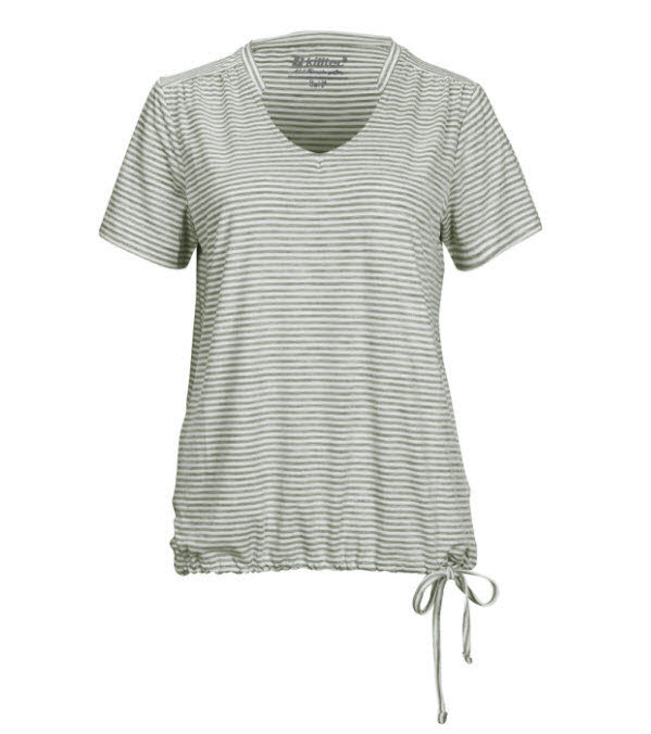 Außerdem wirkt das T-Shirt durch das Bändchen am Saum figurumschmeichelnd.