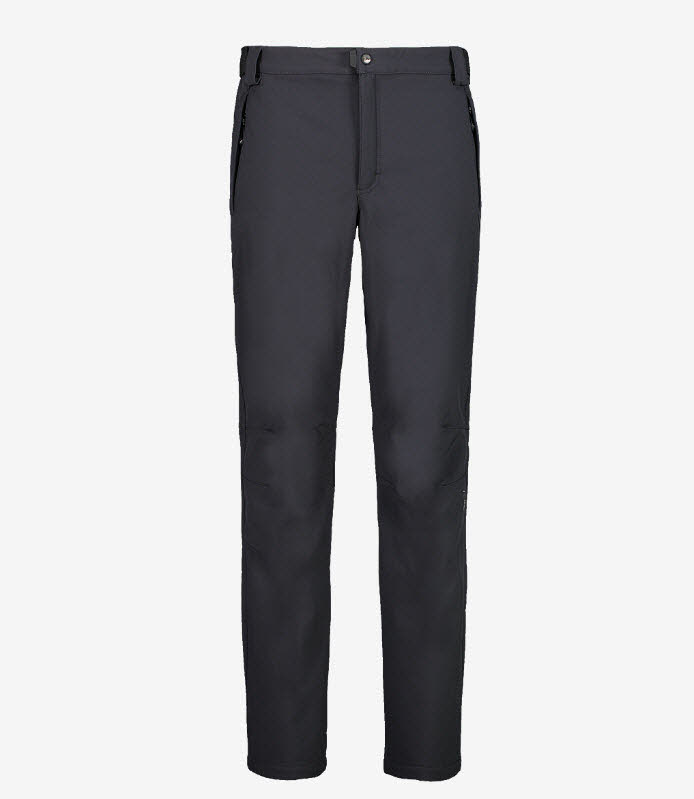 Comfort-Fit-Hose aus Softshell für Herren, mit verstellbarem Bund und mit Reißverschluss verschließbaren Taschen, ideal für Outdoor-Aktivitäten. Während das elastische Gewebe vor Wind und Wasser schützt und das Fleece-Innenfutter für Wärme und ein angenehmes Tragegefühl auf der Haut sorgt, schützt die ergonomische Form den Lendenbereich.