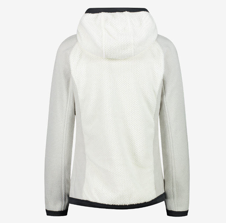 Hybridjacke, die die Eigenschaften zweier unterschiedlicher Fleeceverfahren vereint.