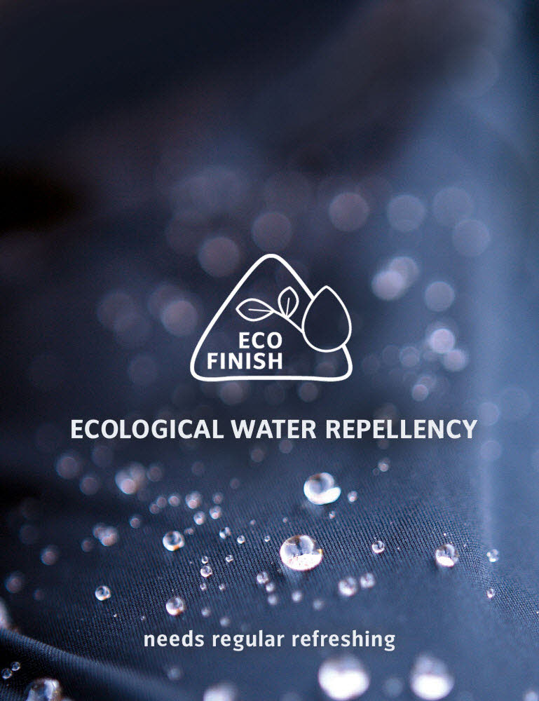 und ist mit Eco Finish umweltfreundlich wasserabweisend ohne Fluorcarbone (PFC) hergestellt.