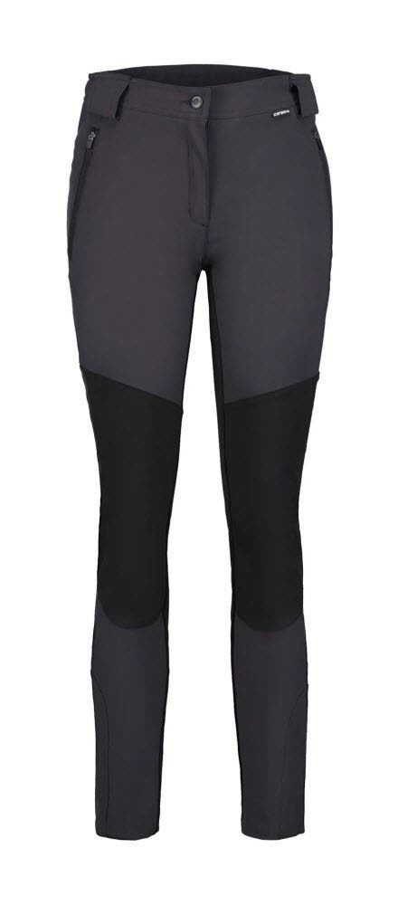Die Front der Icepeak Doral Outdoorhose besteht aus Softshell-Material, das vor Wasser und kräftigem Gegenwind schützt,