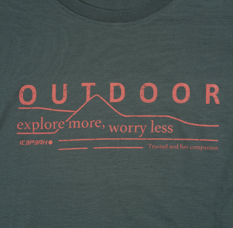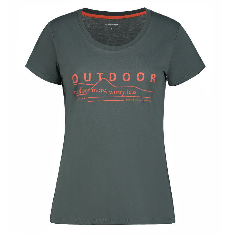 Das Icepeak T-Shirt Belcher für Damen mit rundem Ausschnitt, kurzen Ärmeln, einem Print auf der Vorderseite und normaler Passform.